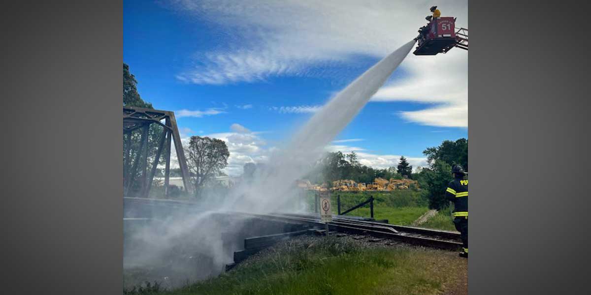 Puget Sound Fire responded to a railroad trestle fire Thursday afternoon, May 16, 2024 in the 16700 block of the West Valley Highway in Tukwila.