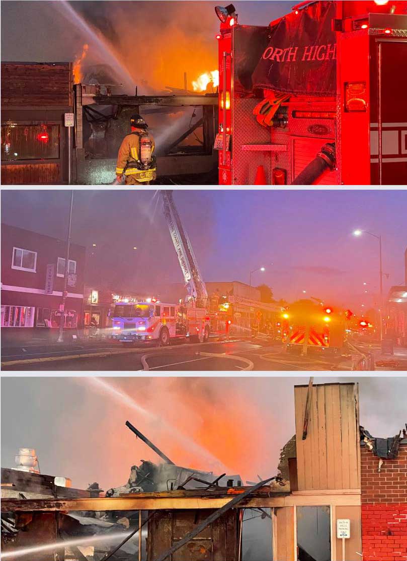 Locker room tavern damaged by fire back in April has been destroyed by fire this morning in White Center. Updates @komonewsradio pic.twitter.com/O6dhIQSFOR