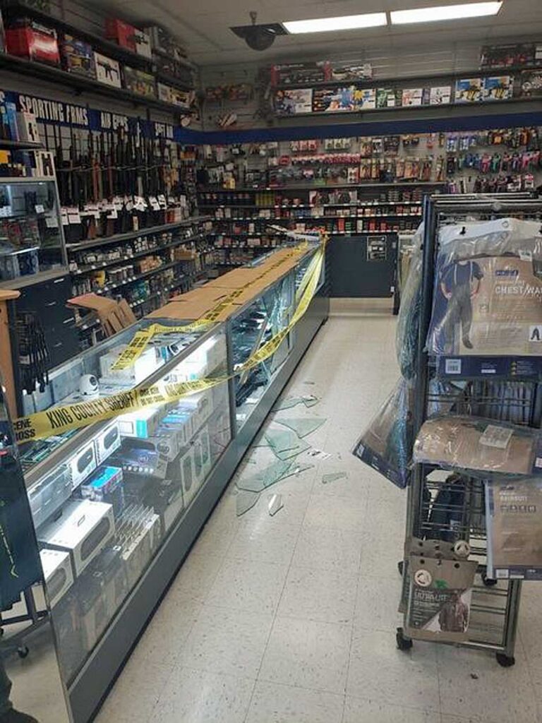 On Saturday, April 29, 2023, six males reportedly entered the Big 5 Sporting Goods store in Burien, broke a display case, then stole several Airsoft pistols.