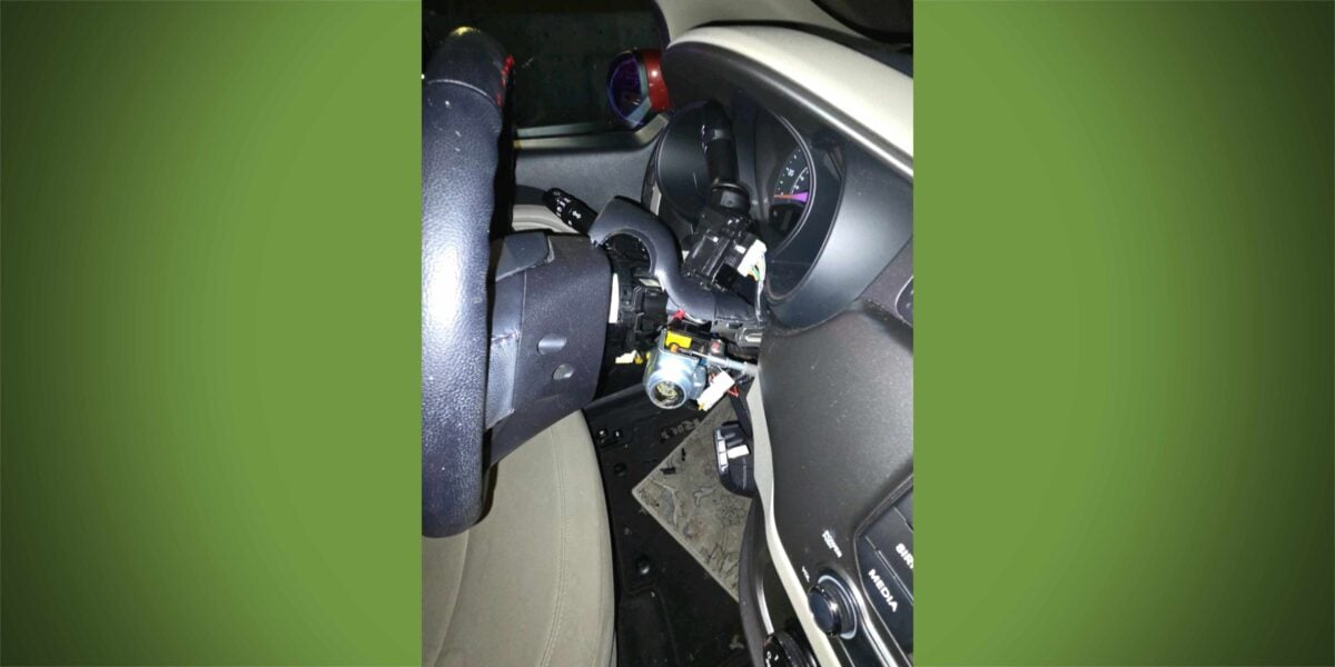 Deputies were dispatched after a reporting party said they were watching two males break into a vehicle. Within minutes of the call, deputies arrived and saw two males inside the vehicle using flashlights under the steering column, police said.