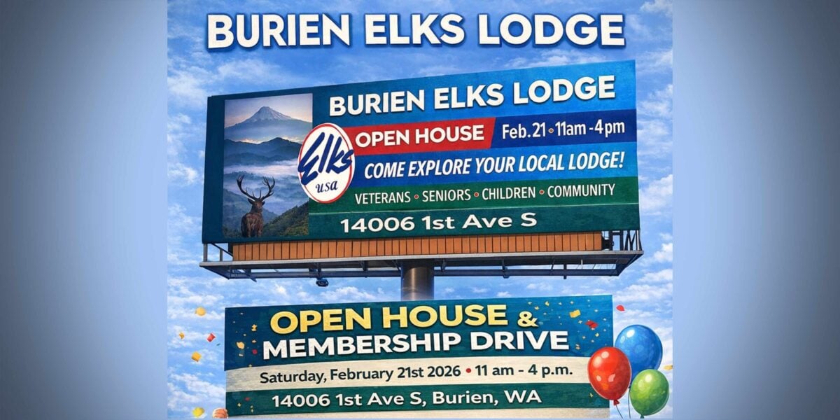Burien Elks Lodge #2143 will host an Open House and Membership Drive on Saturday, Feb. 21, 2026, inviting community members to learn more about the organization’s programs and service efforts.