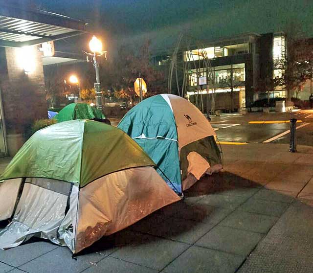 Mayor Schilling explained that there were about five tents around City Hall through the night, but in the morning police let the campers know that city ordinance does not allow camping during the day. Schilling added that there were service providers present Tuesday morning connecting with the campers when they were being told to move, but representatives from Lead/Reach were not present. The individuals packed up their tents and moved out when requested by police, but they may be back to camp in the evening, as the law allows.