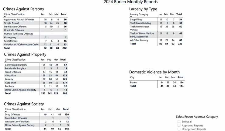 The Burien Police Department (Burien PD) on Wednesday, April 10, 2024 released its first-quarter (Q1) 2024 crime report, showing a decrease in most crime categories compared to the same period last year.