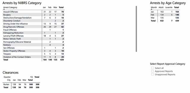 Arrests were also up, with Burien PD making 439 arrests in the first quarter. Drug offenses led the way with 82 arrests, followed by assaults at 70.