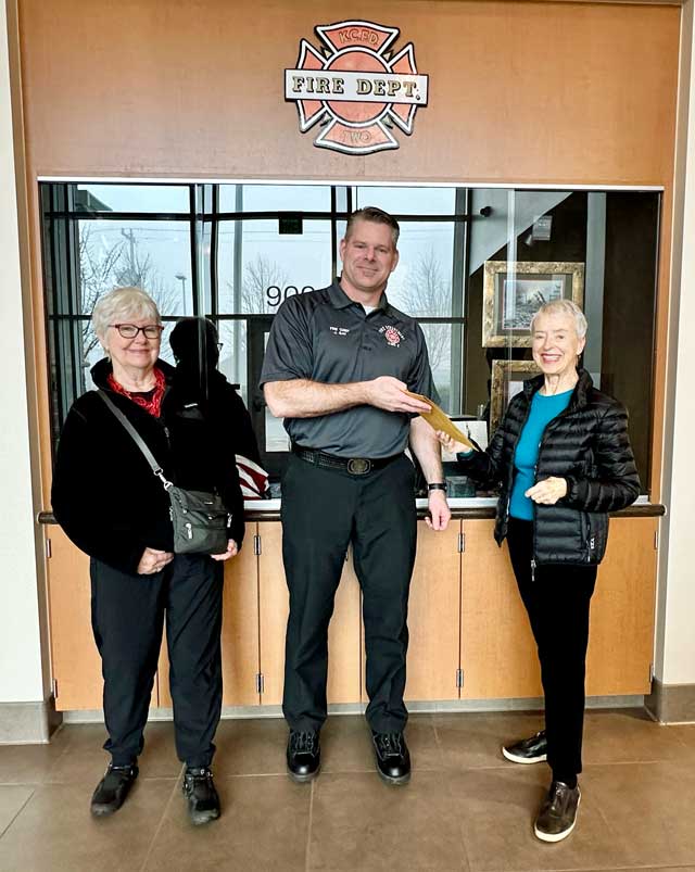 Bunny Critch coordinated the collection, and along with Peggy Cummings donated the funds to incoming Fire Chief Jason Gay at the King County Fire District No. 2 station on Thursday morning, Dec. 21, 2023.