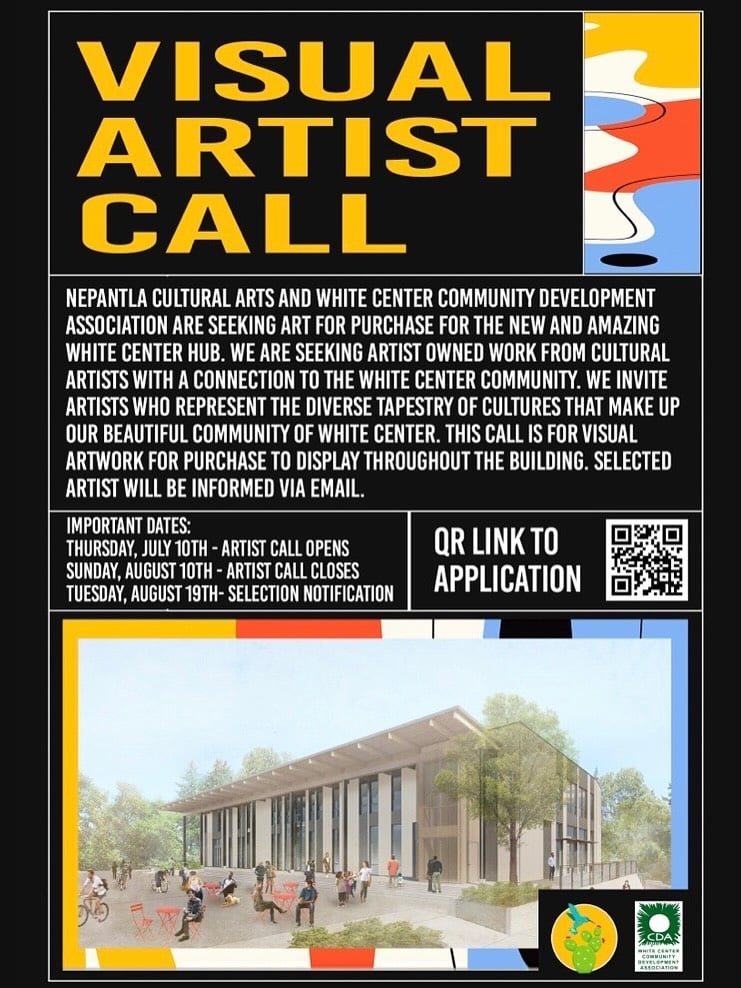 Nepantla Cultural Arts Gallery and the White Center Community Development Association (WCCDA) have issued two open Calls for Artists to contribute work to the upcoming White Center HUB, a new community space intended to reflect the area’s cultural richness.