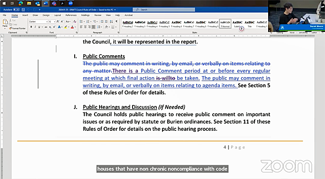 They also voted to keep the “two-touch system”, meaning that most business items have the opportunity to be discussed and voted on twice. Councilmember Moore also argued for the importance of this system, as it allows for more thoughtful and thorough consideration of important topics, as well as more opportunity for public feedback on the issues.