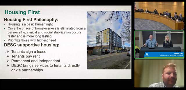 Noah Fay, Senior Director of Housing Programs for DESC (Downtown Emergency Support Services) updated Council on the new residential building located on SW 150th Street & 8th Ave SW. He said the project is on track to open in early May. It will have 95 single-occupancy studio apartments for those facing the most profound housing needs. 30% of the units are reserved for Burien’s own homeless population, as determined by organizations that work with the homeless.