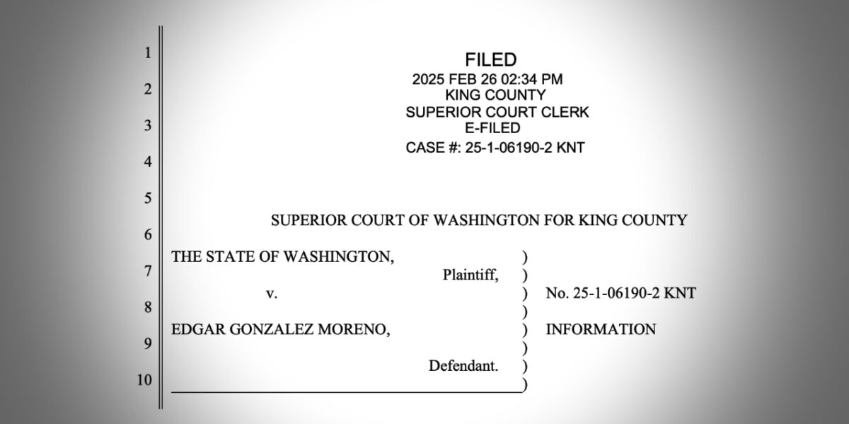 According to charging documents, a King County Sheriff’s deputy attempted to pull over Gonzalez Moreno’s black Jeep Grand Cherokee after noticing his erratic driving and learning he had an active felony warrant. Instead of stopping, Gonzalez Moreno allegedly accelerated, re-entered the highway, and sped away.