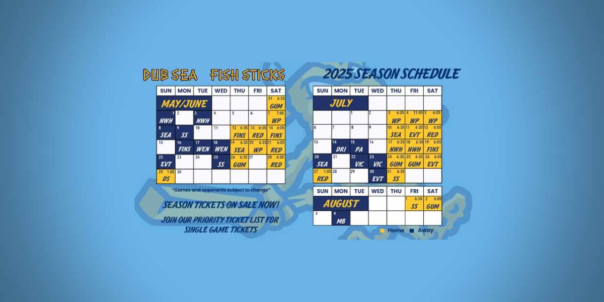 The DubSea Fish Sticks released their 2025 summer baseball schedule this week, featuring 27 home games packed with competition, community fun, and Pacific International League action.