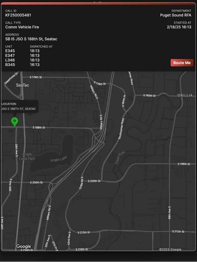 Fire crews responded to a commercial vehicle fire on southbound I-5 just south of South 188th Street in SeaTac on Tuesday afternoon, Feb. 18, 2025, according to Puget Sound Regional Fire Authority (RFA) dispatch records.