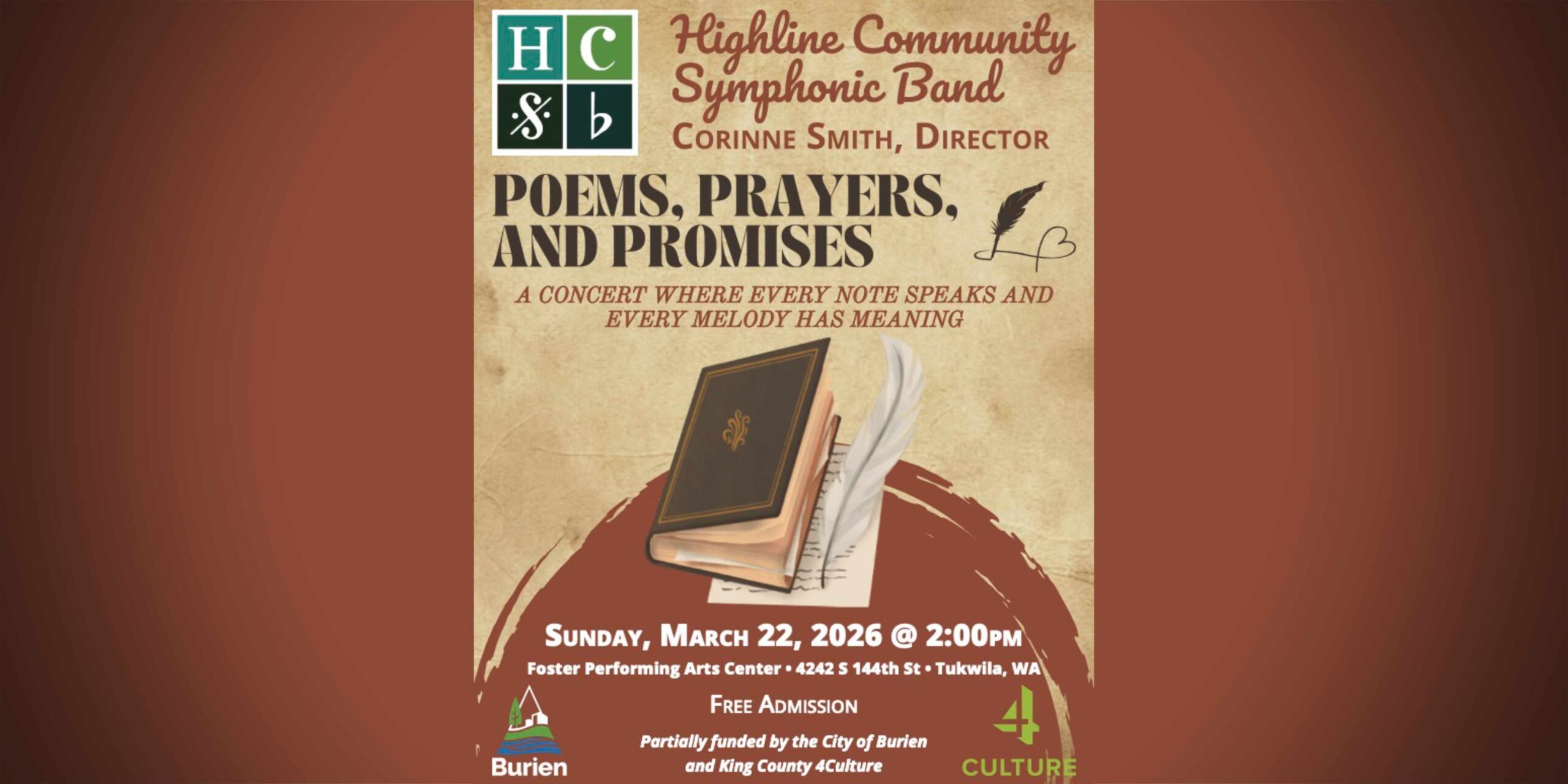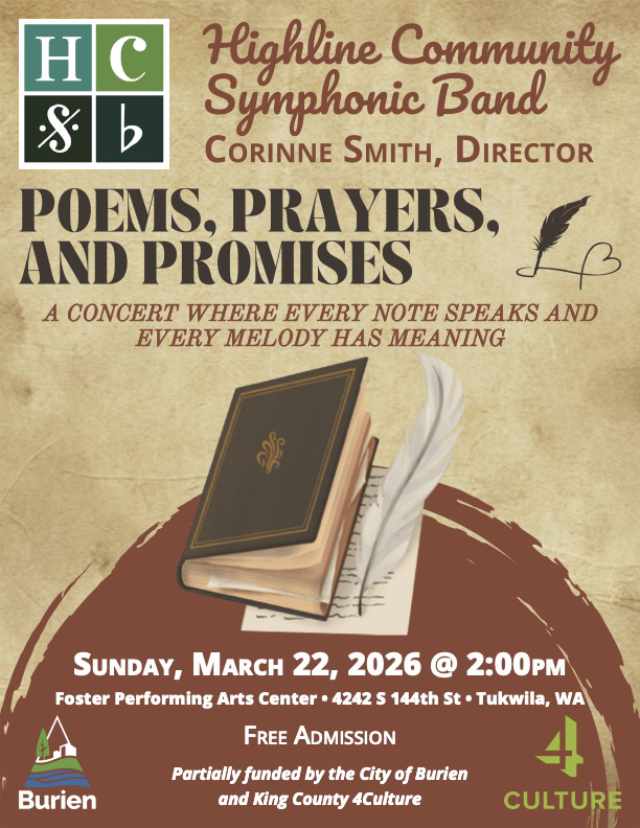 The Highline Community Symphonic Band is a nonprofit organization partially funded by the City of Burien and King County 4Culture.