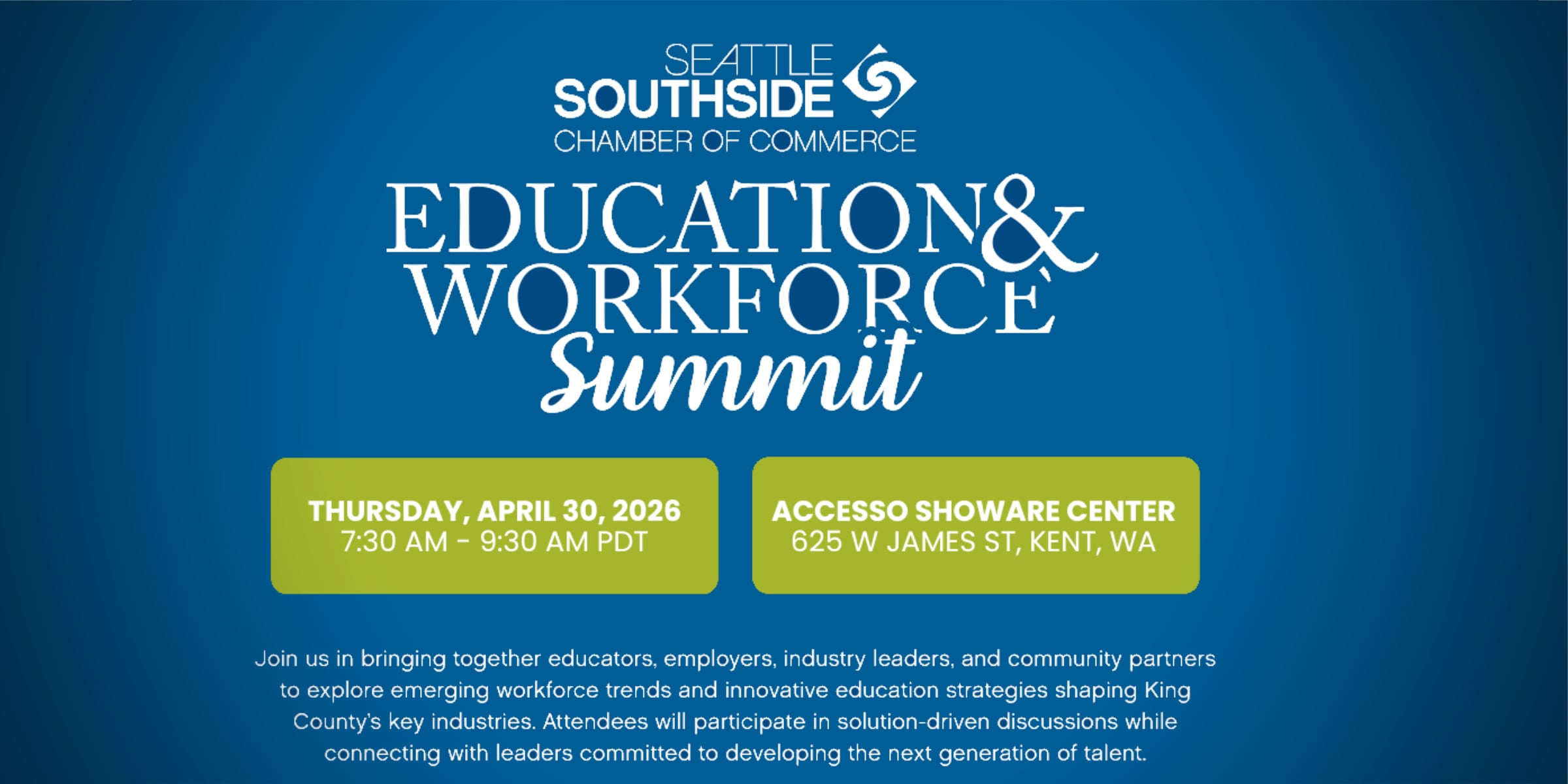 Seattle Southside Chamber’s Education & Workforce Summit will be Thursday morning, April 30