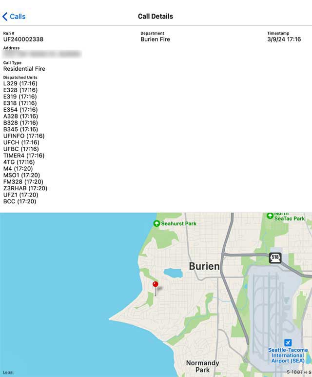 Fire crews from King County Fire District #2 – with assistance from neighboring jurisdictions – were dispatched to a residential fire in Burien’s Gregory Heights neighborhood on Saturday afternoon, Mar. 9, 2024 at around 5:16 p.m.