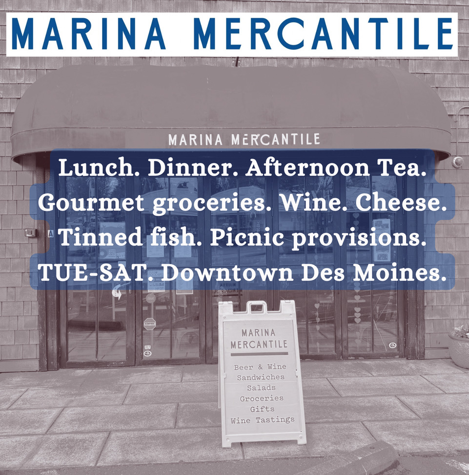 Of course, there’s far more to Marina Mercantile than cheese or retail. In late 2023, at the direction of co-owner Brenda Sutherland, Marina Mercantile launched Des Moines’ one-and-only afternoon tea service. This unexpected addition to Marina Mercantile’s offerings has been an absolute hit with the community, drawing positive comparisons to esteemed tea services including the Queen Mary and the Empress. Marina Mercantile’s afternoon tea service is centered around Sutherland’s fabulous in-house baked goods and an ever-expanding selection of tea from Apolis Teas, a Sumner-based artisan tea producer. It’s hand-made. It’s local. It’s delicious.