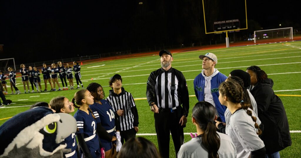 The Seattle Seahawks brought their game-day spirit to the inaugural Girls Flag Football Jamboree at Highline Memorial Stadium last week, highlighting the growth of girls flag football in Highline Public Schools.