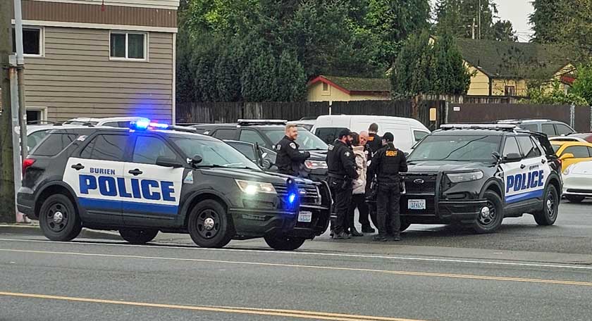 - At 9:51 a.m., Burien Police Officers responded to do a welfare check on an elderly male who was not feeling well. This response only had two cars respond for a welfare check.