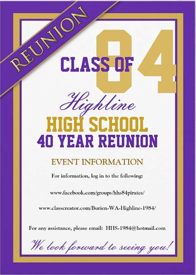 Highline High School’s Class of 1984 will be holding its 40th Reunion soon, and they’re seeking alumni to come celebrate the occasion.