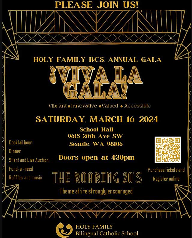 All are invited to join Holy Family Bilingual Catholic School on Saturday, Mar. 16, 2024 for an evening that’ll take you back to the Roaring 20’s, featuring flappers, a speakeasy and so much more.