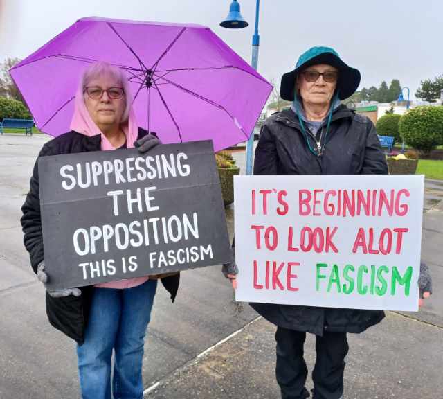 I am a member of Seniors for the Constitution, one of the sponsors of these regular peaceful demonstrations. We are in our 70s, 80s and yes, 90s. We’ve seen a lot: the civil rights era, the Viet Nam war, Kent State, the women’s marches, and more recently, Black Lives Matter. But what our democracy has devolved into now is the worst. It’s the worst because there are, apparently, no guardrails in place anymore. Half of our Congress is complacent and the other half can’t do anything about it because they are in the minority. The Supreme Court has given our president the right to do whatever he wants with impunity.