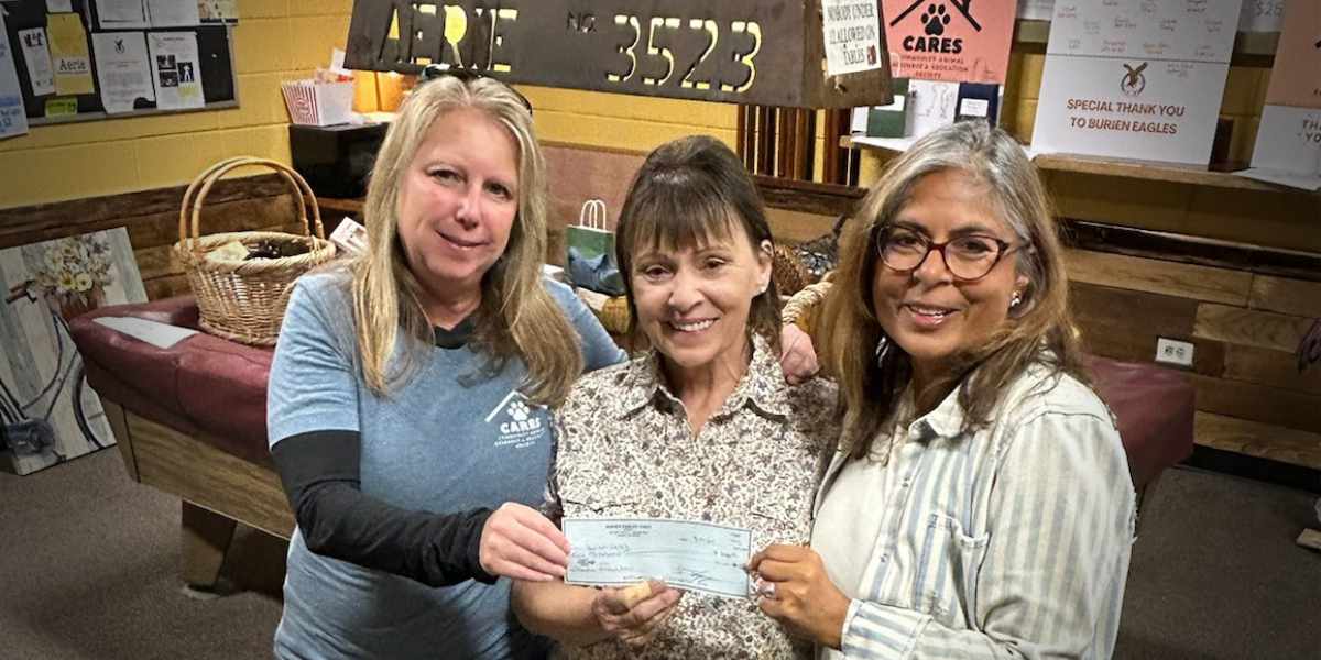 In a special moment during the event, Cyndee, a dedicated supporter, presented a $2,000 check raised through her efforts in the kitchen. Her contribution was recognized with appreciation from both the shelter and attendees.