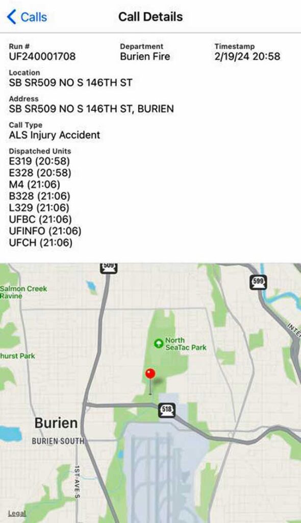 The Washington State Patrol is reporting that on Monday night, Feb. 19, 2024 just before 9 p.m., a vehicle with an unresponsive male driver was found in lane 2 of southbound SR 509 near 146th Street in Burien (map below).