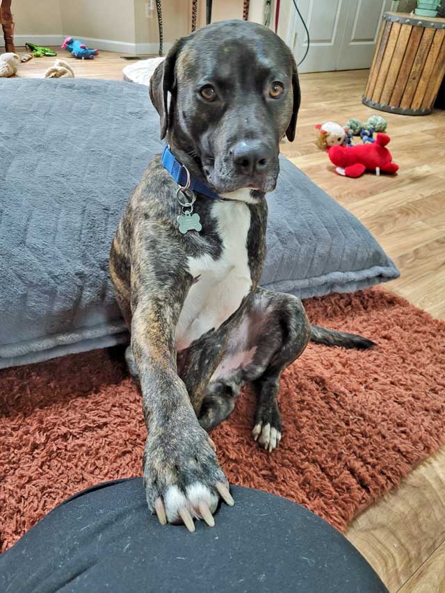 Meet “Louie,” a Plott Hound Mix, estimated between 2-2.5 years old: