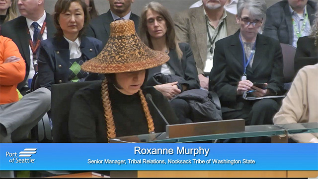 The Port of Seattle’s newly elected Tribal Relations Officer, Roxanne Murphy of the Nooksack tribe, made her comments on Tuesday in traditional garb. She celebrated the commitment to the Decision, hoping that it will allow future generations to continue traditional harvesting.