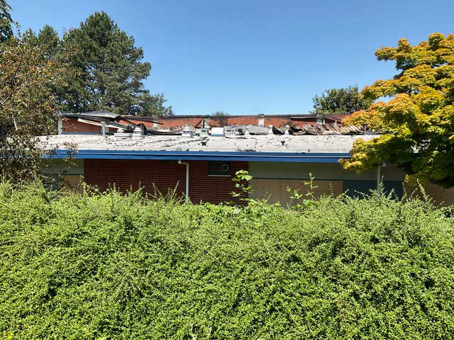 A suspicious late-night brush fire that quickly spread to the roof of the former Southern Heights Elementary School in Burien was reported to 911 at 11:16 p.m. on Tuesday night, July 9. 2024.