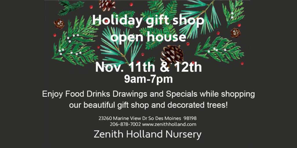 Don’t miss this exciting and fun event that will include specials and drawings. Grab a friend or loved one or two and head for one of Des Moines only gift destinations, Zenith Holland Nursery and Gift Shop for a memorable start to the holiday season.