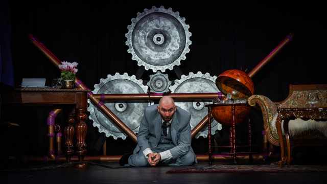 Timothy Duval’s Domin, General Manager of Rossum’s Universal Robots (R.U.R.) is a money-driven, condescending Grade A sleazeball, whose soliloquies make him the counterpoint to Helena’s humanitarian concerns and the voice of the capitalist in the larger zeitgeist of the play.