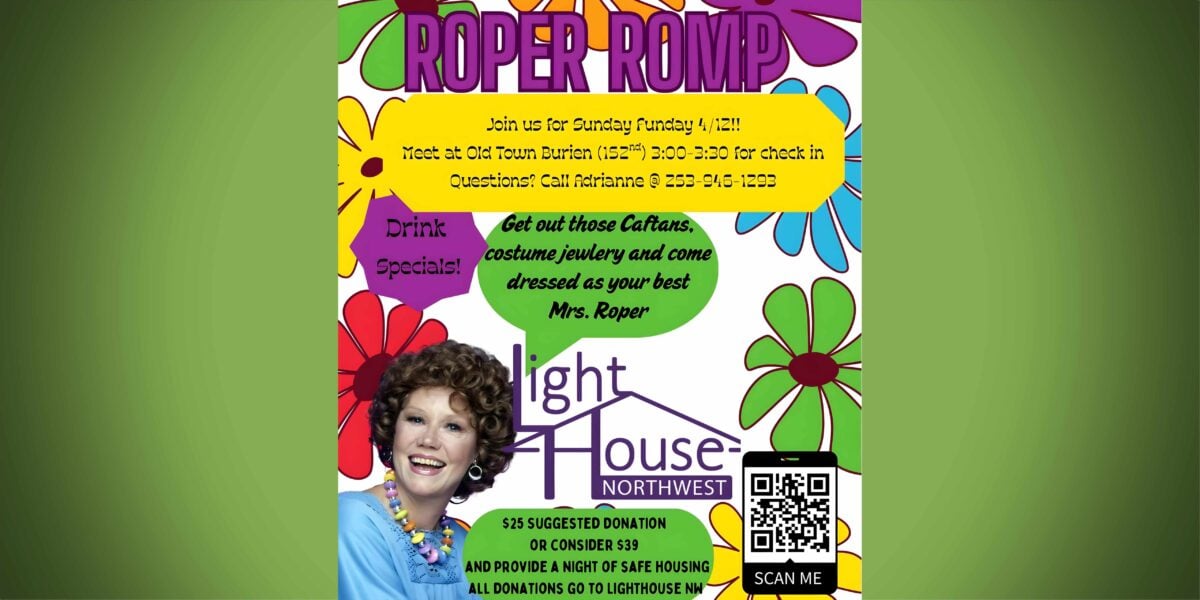 A Mrs. Roper-themed fundraiser is coming to Olde Burien on Sunday, April 12, inviting participants to don colorful caftans and costume jewelry while raising money for Lighthouse Northwest.