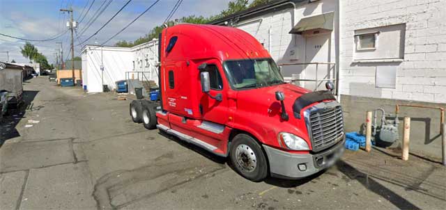 A Google Maps Street View shows that the red semi-truck has been parked in that alley for a while: