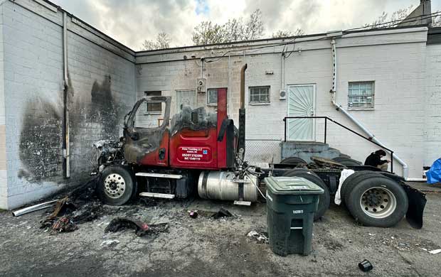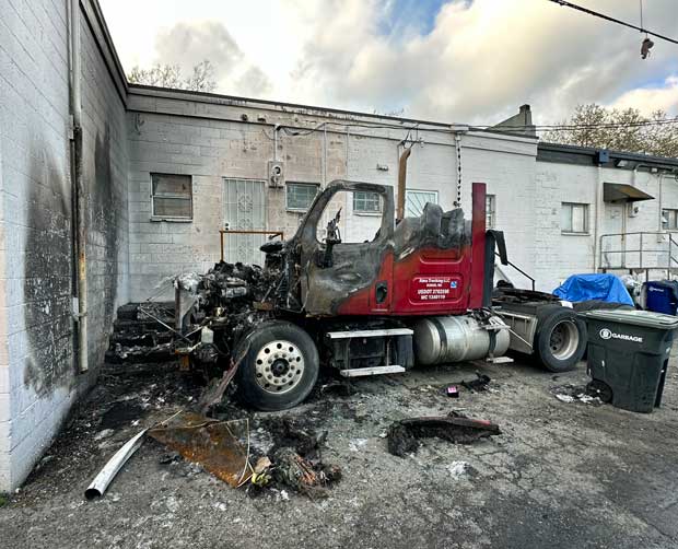 “This part of the alley is huge problem with drug use – it’s basically a public restroom, and the Tori Sushi people keep having their dumpsters broken into,” Carrie Johnson, owner of nearby Aya Yoga told The B-Town Blog. “So, the assumption is that someone broke into the semi, maybe to sleep, and started the fire.”