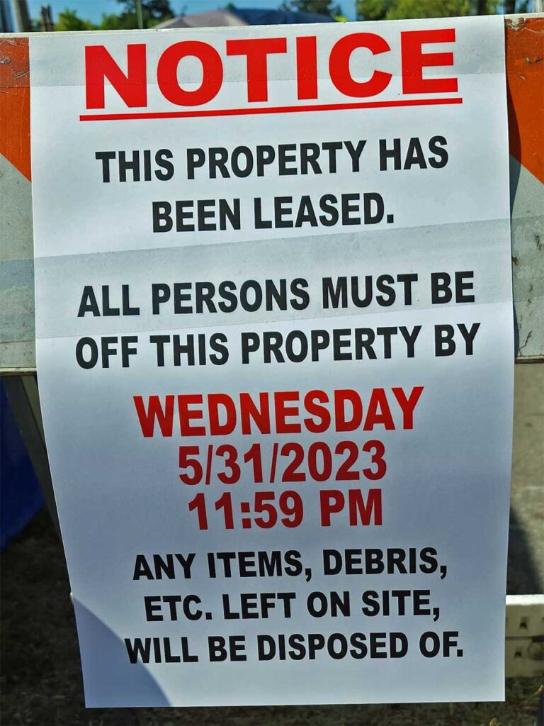 “All persons must be off this property by: