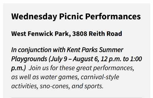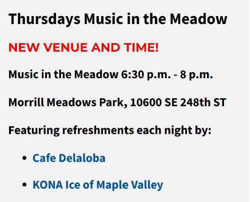 - Burien: Sunday, Aug. 3, 5 p.m., Town Square Park