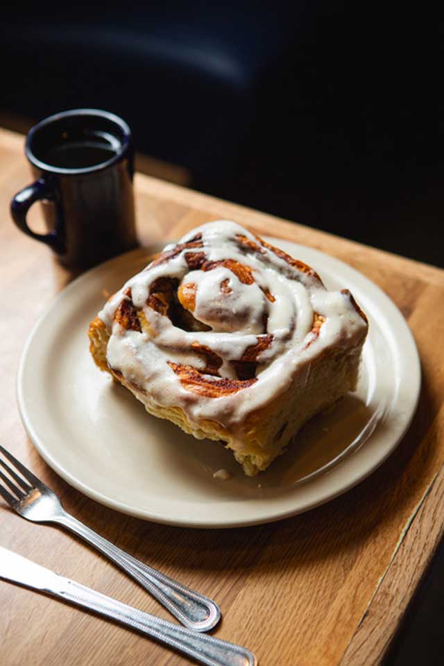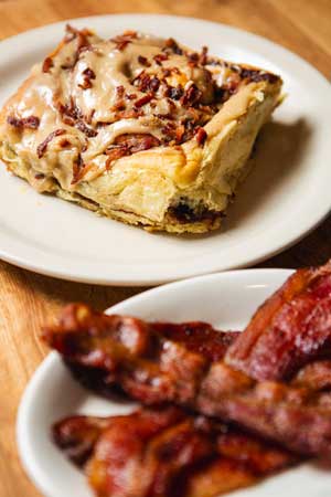 The huckleberries are also a defining difference in a new cinnamon roll you will find only at the Huckleberry Square. The Huckleberry cinnamon roll is part of a new collection of oozy, fragrant, and well balanced cinnamon rolls inspired in part by Rose’s Restaurant and Bakery cinnamon rolls from Portland, Oregon. Huckleberry Square management and Stephen have been experimenting and adapting to create a “Destination Cinnamon Roll,” something you will drive for, drool over and return to again and again. Their ambition is to have a scratch made roll with the correct ratio of cinnamon to dough, well risen and perfectly glazed. Including a Classic, Maple Bacon and of course a signature Huckleberry version. Enjoy a Classic anytime, breakfast, brunch, lunch or dinner for a satisfying and not ‘too sweet’ treat. The Maple Bacon brings a “breakfast” fragrance with a hint of salt to fill the mouth with a savory and sweet complexity. Finally, the Huckleberry version is destined to be a signature piece in the dessert menu, worthy to join the beloved Huckleberry cheesecake, scones and Huckleberry pie as a crowd favorite.